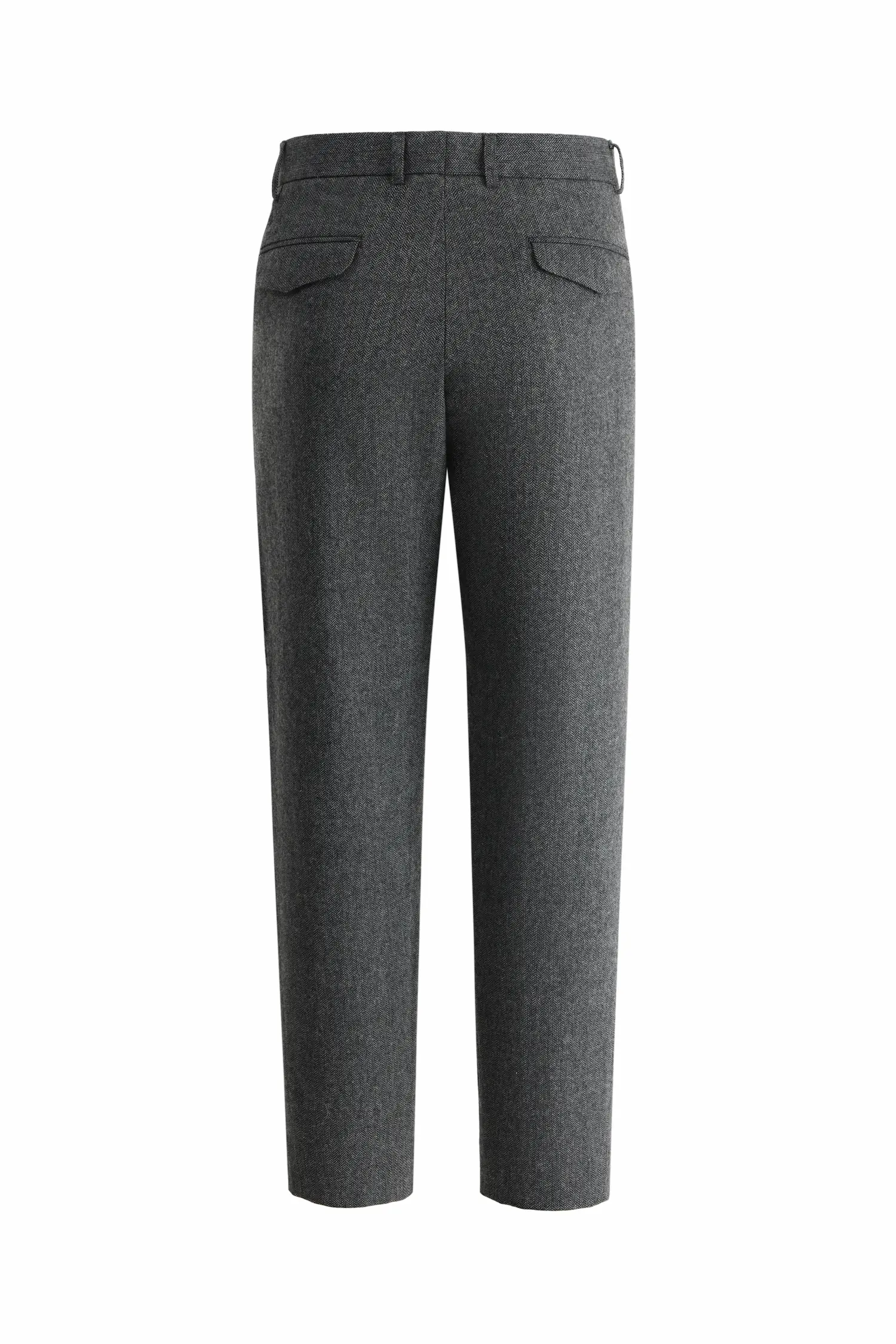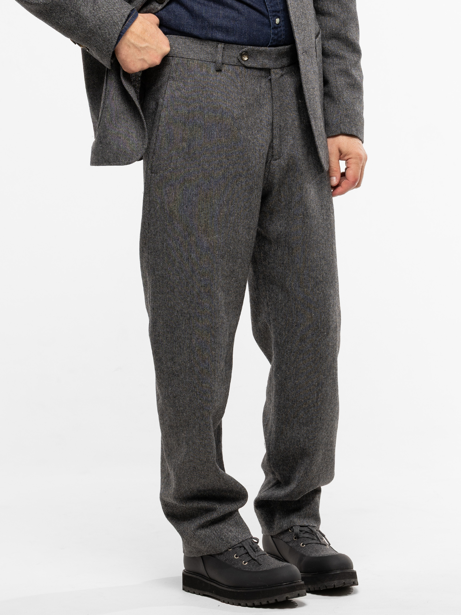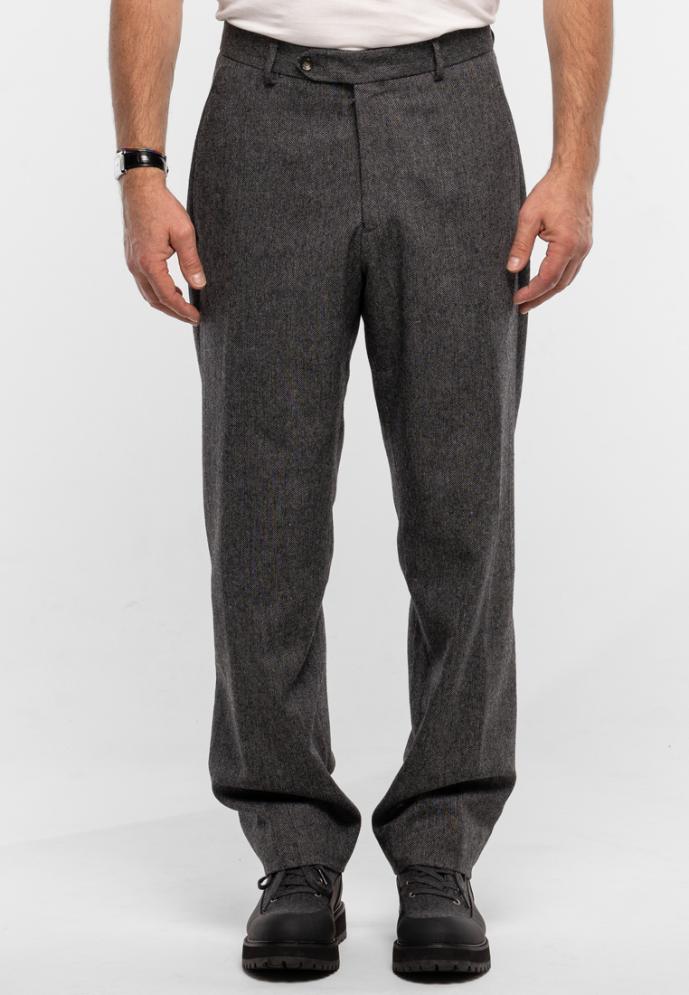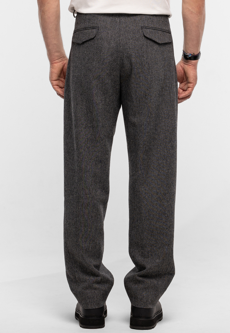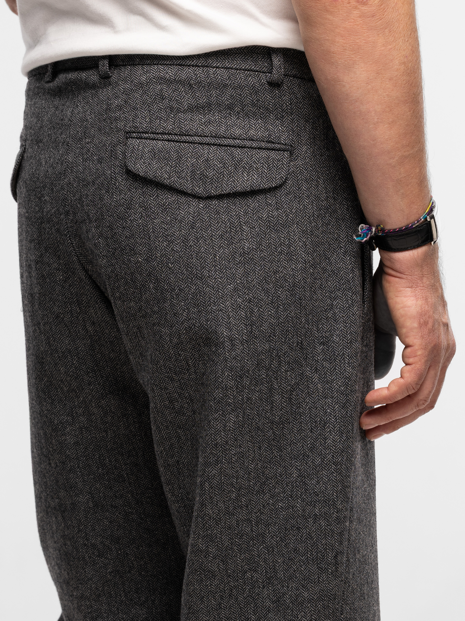 Брюки изготовлены из смесовой ткани: 50% шерсть, 50% полиэстер. Комфорт в использовании данной модели достигается особенностями кроя и дополнительным объёмом в области бёдер: